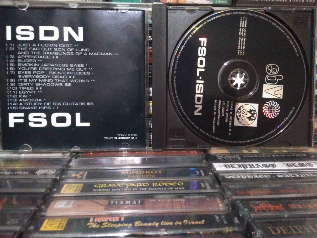 ISDN is pretty much a live album by electronic experimentalists FSOL or Future Sound of London, using ISDN digital phone link technology. These tracks were transmitted live to radio station networks in Holland, Europe, and New York, from Earthbeat Studios in London, back in 1994, in some sort of guerilla-radio style transmissions.