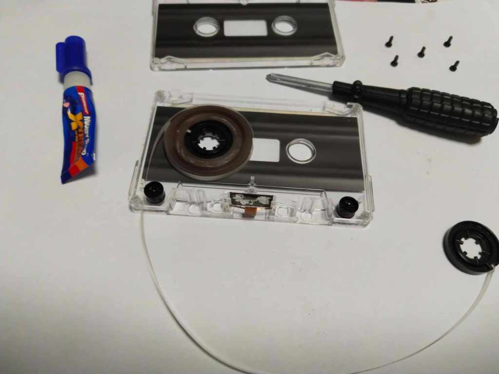 By the way, this will only work on cassette tape types that have the five screws on it. Tough luck for those tapes with seamless screwless cases. You’ll need carefully pry it open with a cutter carefully, and have a replacement case ready.