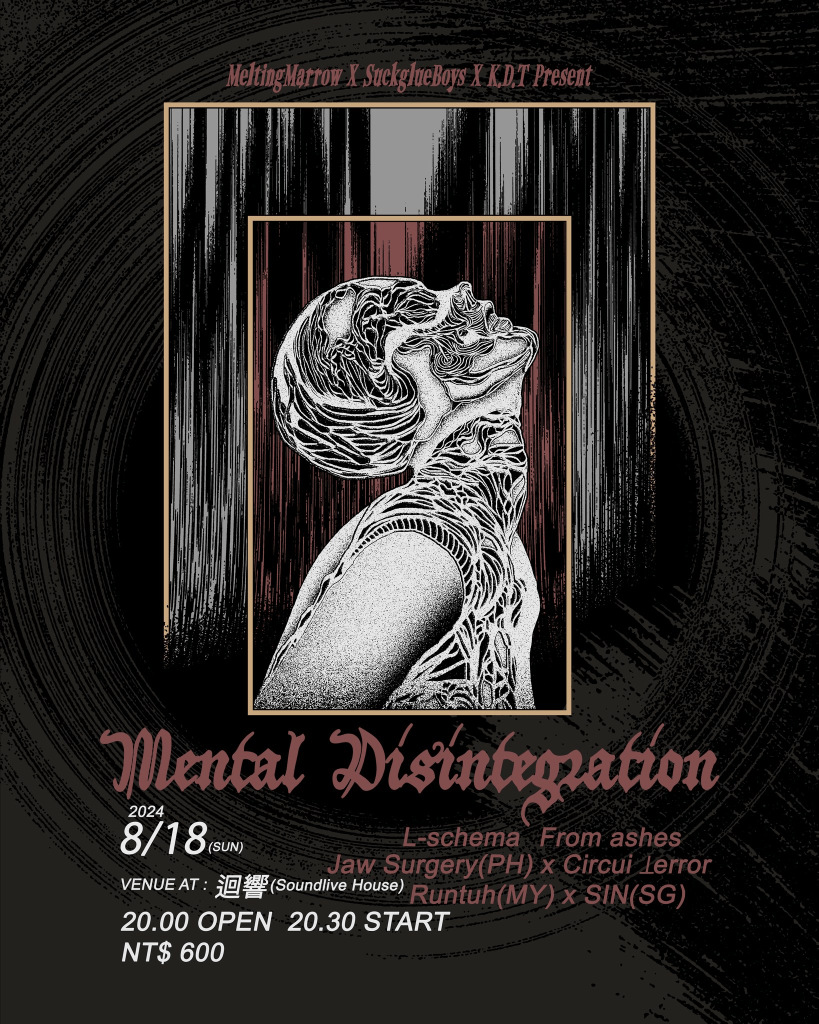 The Mental Disintegration and Threshold of Nothingness November 2024 Taiwan Tour saw the killer combination of Malaysia powerhouse extreme metal and noise band Body Rag, along with their members Slaughter Table & BA’AH, with SBB from Japan, & Zenabi from Philippines.