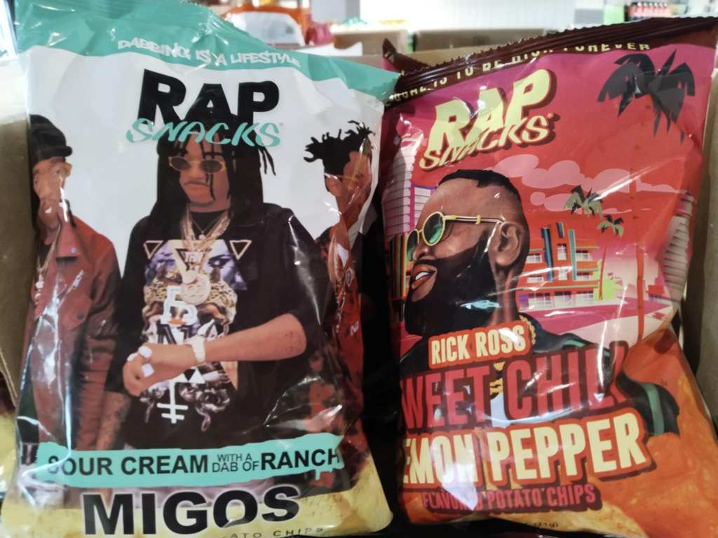 Each packaging features inspirational quotes written across its top opening. Rick Ross’s Sweet Chili Lemon Pepper flavor has “The Goal is to be Rich Forever” emblazoned across the top. Migos has “Dabbing is a Lifestyle” (we’re not exactly sure which type of dabbing it refers to, although it says “sour cream with a dab of ranch”). Nicki Minaj says “Take Advantage of Every Moment in Life”. And so on.