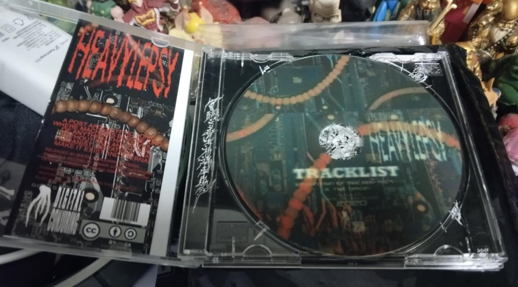 The Heavylepsy CD is a long, two part descent to personal hell, slowly disintegrating the listener with heavy death industrial subharmonic tones and layers. The mechanized rhythms repeatedly drop down your skull with blunt force trauma, while suffocating you with corroded boiler machines of death ambience. It never lets up, slowly eroding your humanity in the process.