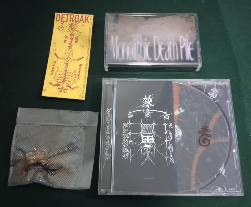 The various textures and color schemes of death, decay, and corrosion in the packaging and art direction of this bundle is the perfect physical manifestation of these two albums. The black, white, red, brown, crimson, and gold colors are also visual cues and symbols that adorn the varied sigils, fonts, and designs. The mystical sigils and talisman symbols create the haunting aura of these two distinct albums and create some of the best physical formats in southeast Asian noise.