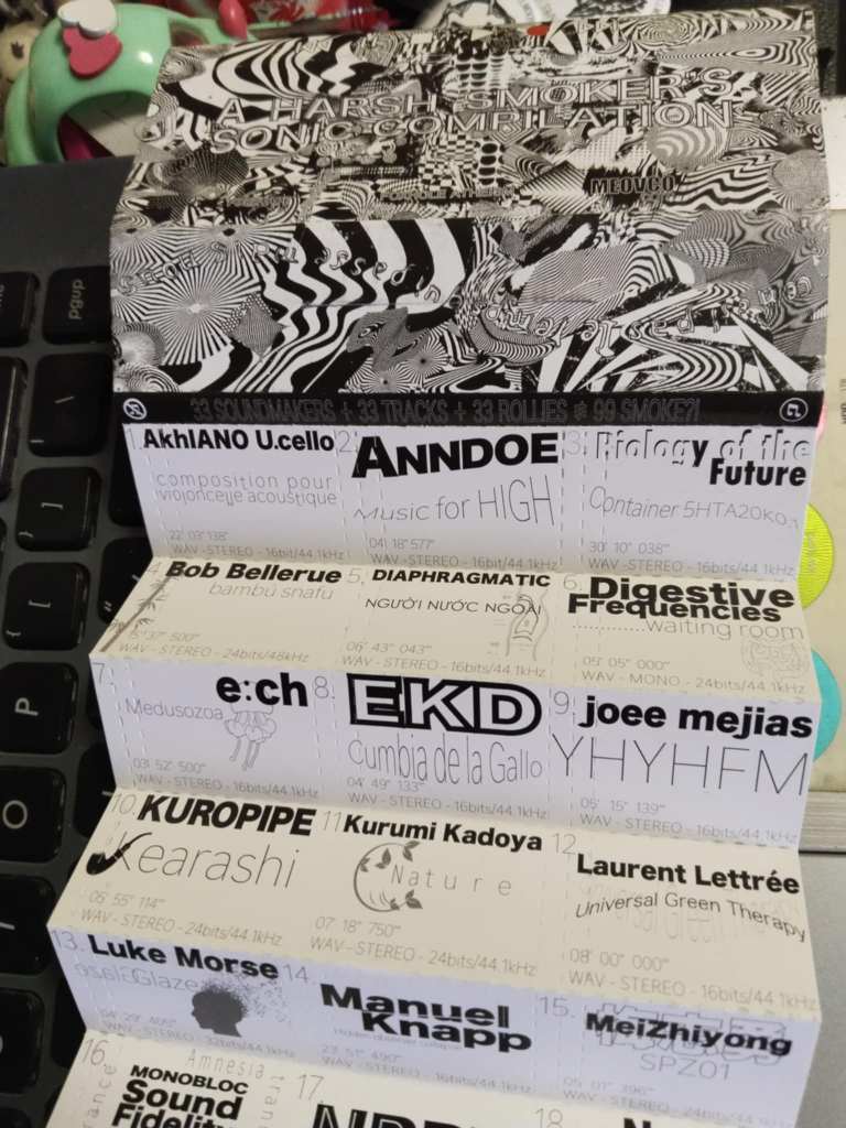 Aside from the excellent rolling paper, and its expanded artwork inside, is a hot compilation from some of the best Asian/international experimental, noise, and sound art entities to give you one hell of a good time as you smoke joint after joint of this excellent product (cannabis or legal herbal smoke supplements not included).