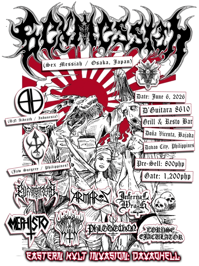 Sex Messiah Pilipinas Tour will desecrate Davao and Manila, a JOINT effort by THC Zine in hellish fn conspiracy with Davao Hellbangers Production!